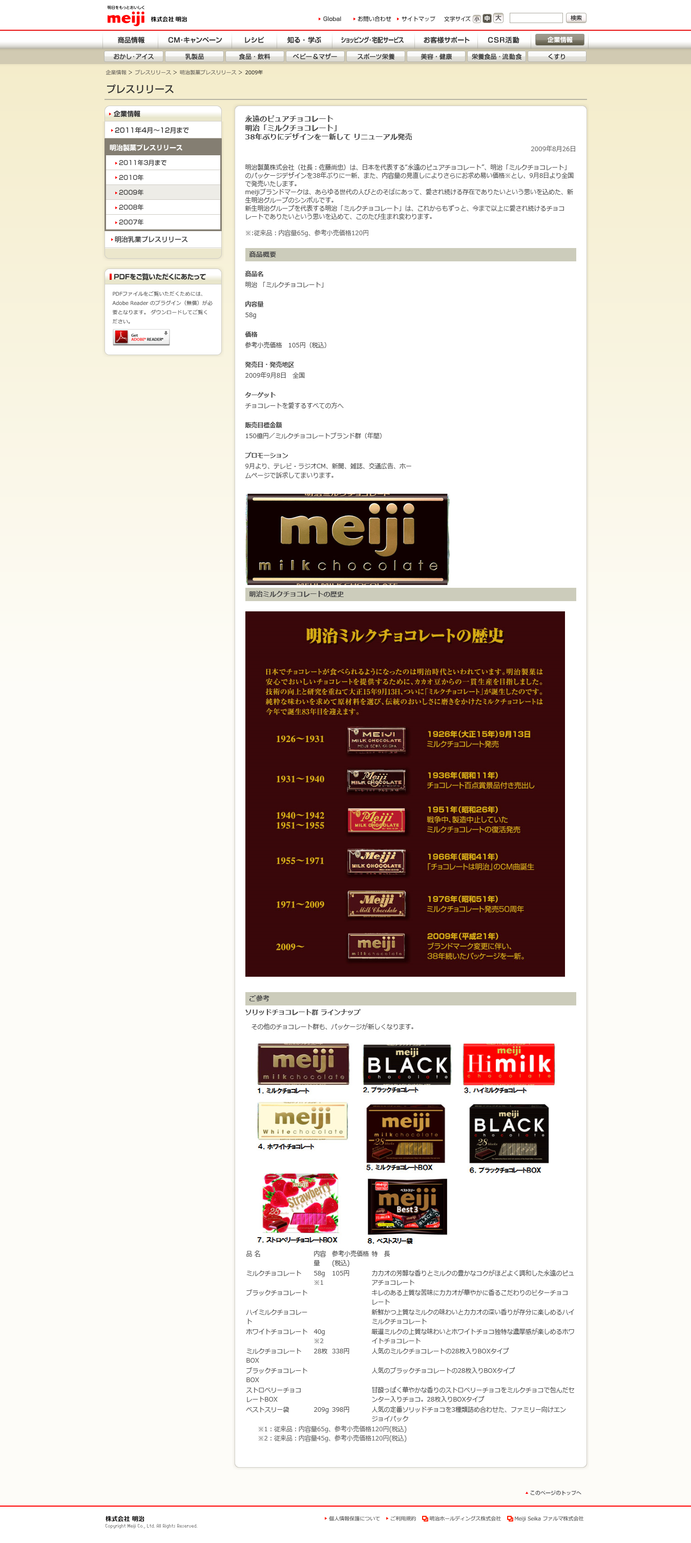 | 2009年 | 58g | 105円(税込) | パッケージデザインの変更。 お求め易い価格とした。 | |
