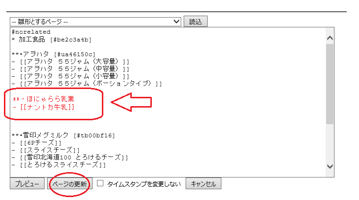 商品名を書き、「ページの更新」ボタンをクリック。